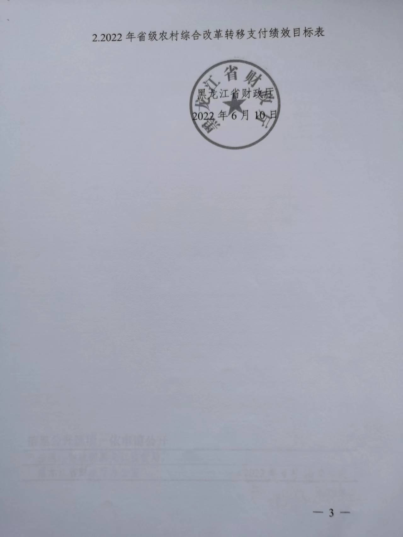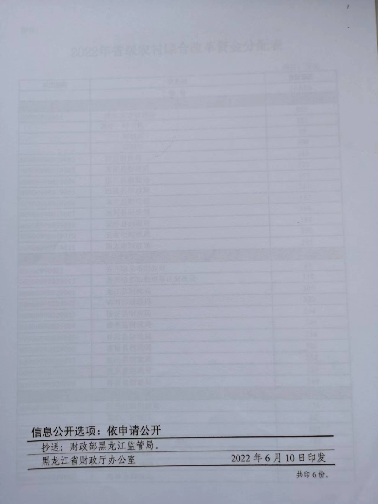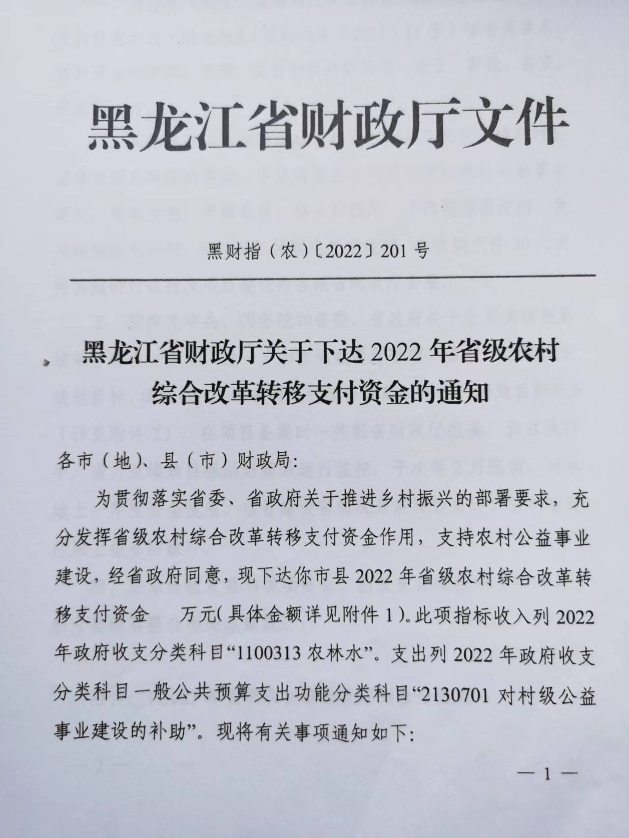 黑财指(农)【2022】201号 黑龙江省财政厅关于下达2022年省级农村综合改革转移支付资金的通知