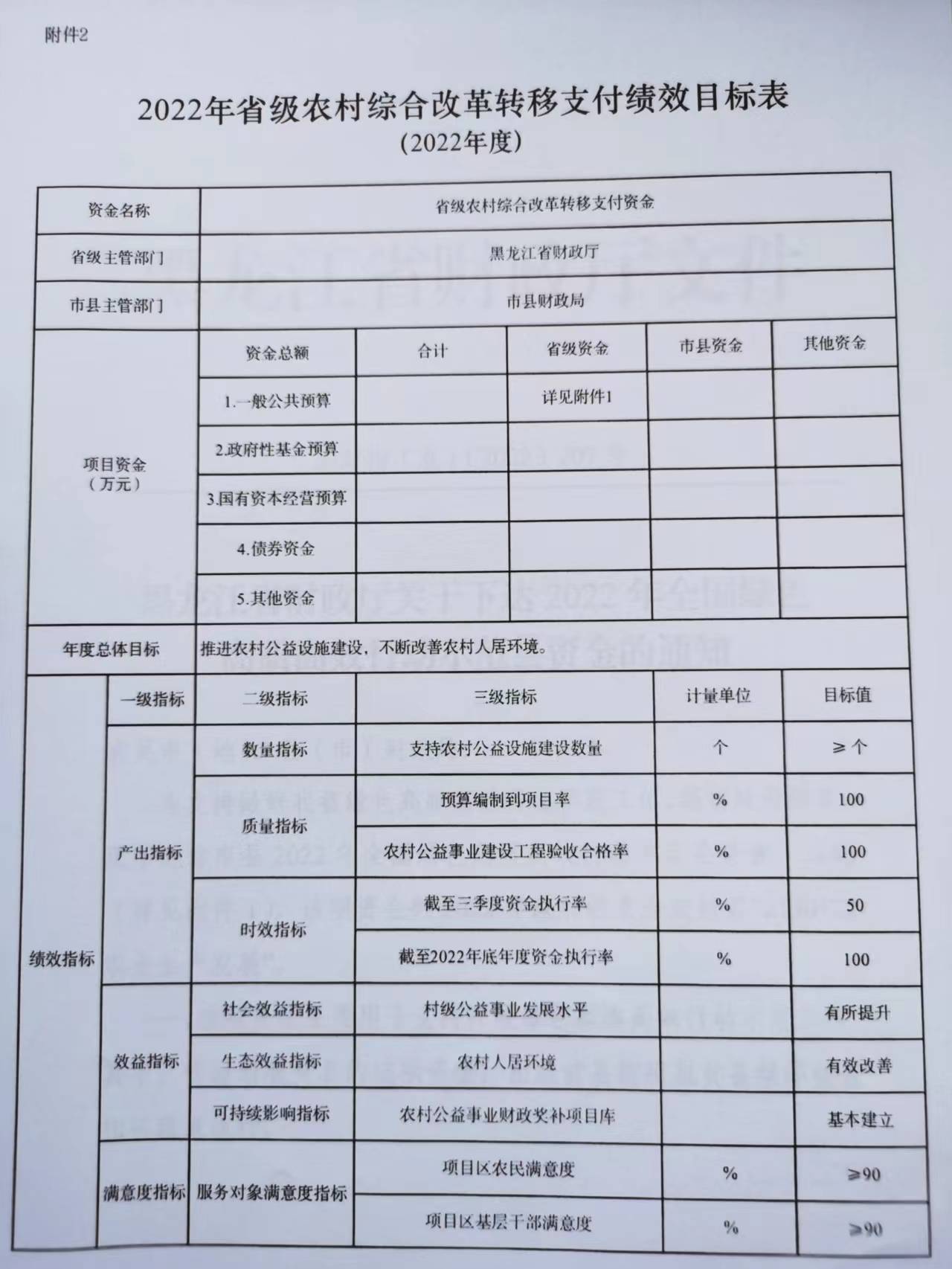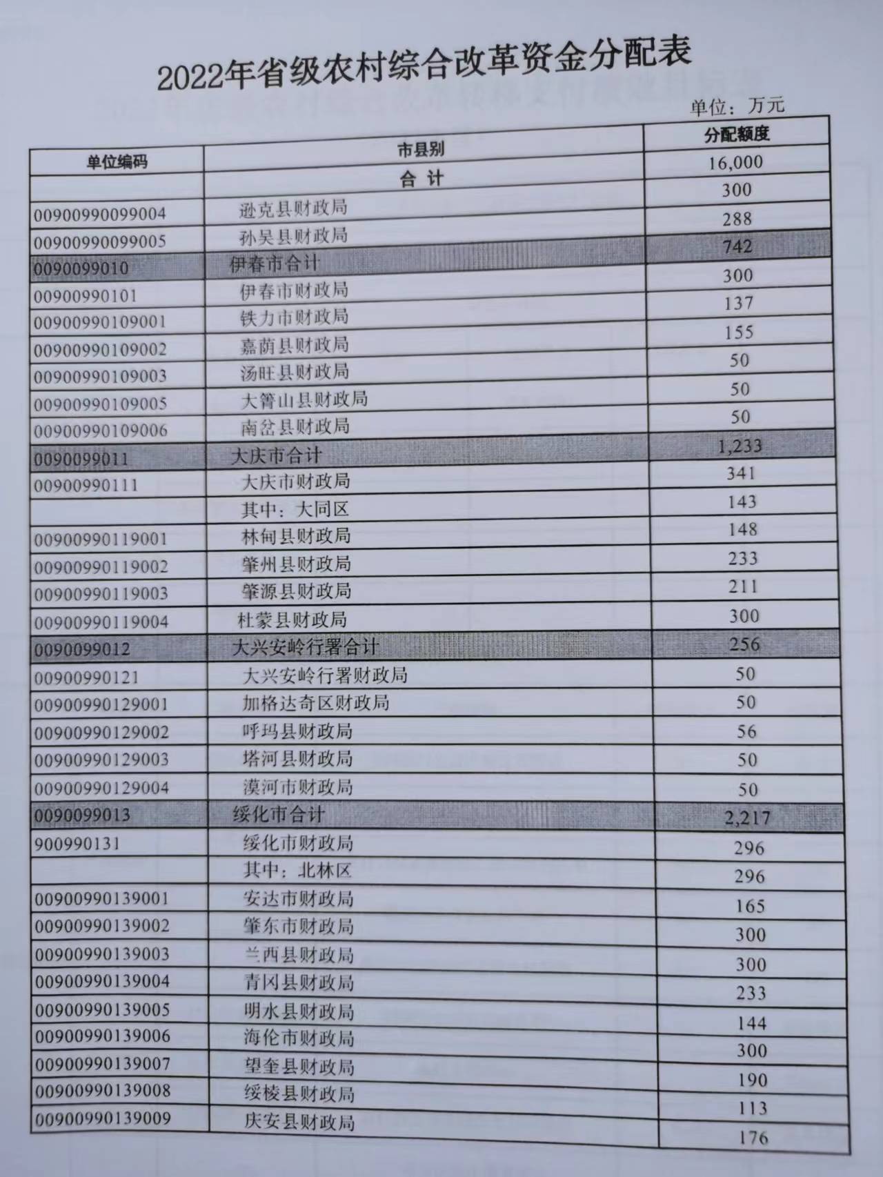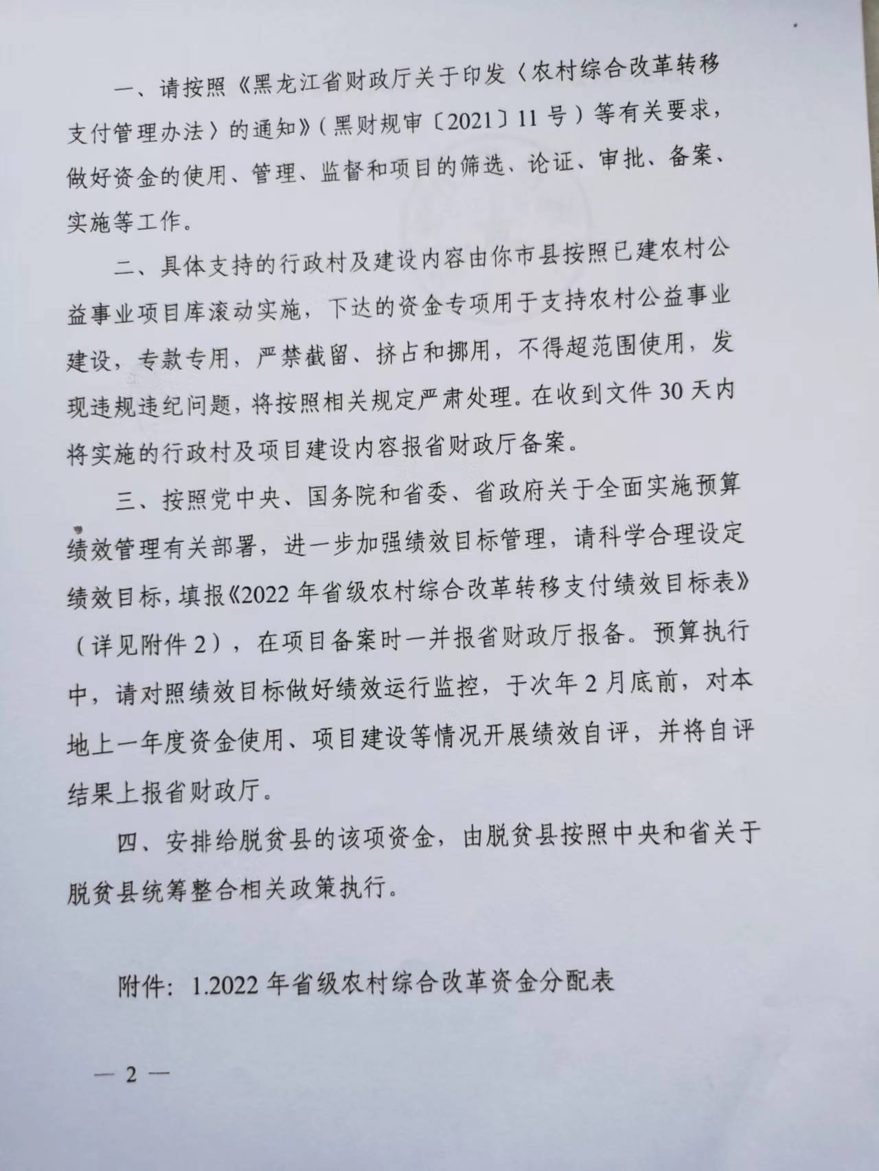黑财指(农)【2022】201号 黑龙江省财政厅关于下达2022年省级农村综合改革转移支付资金的通知