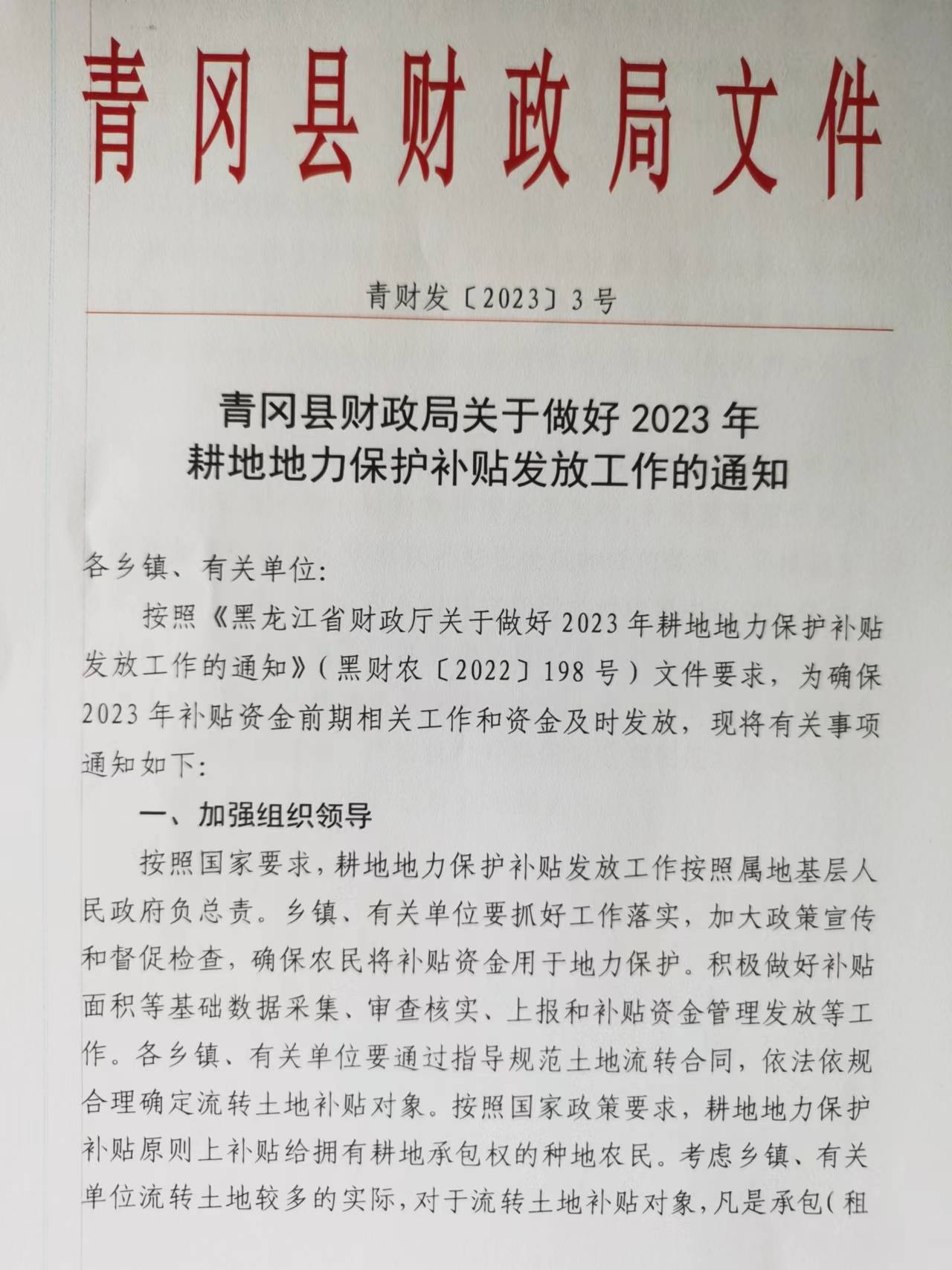 青冈县财政局关于做好2023年耕地地力保护补贴发放工作的通知
