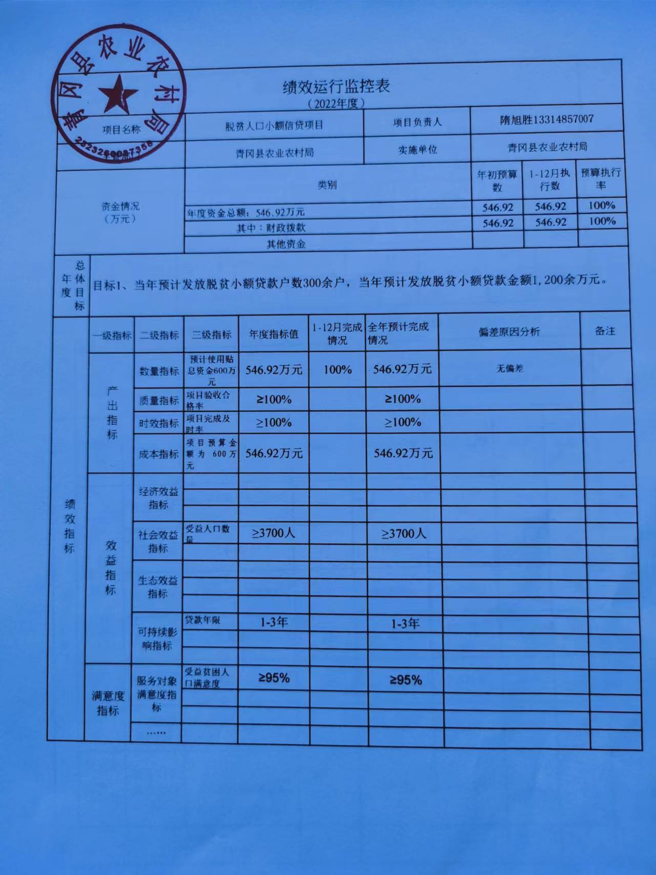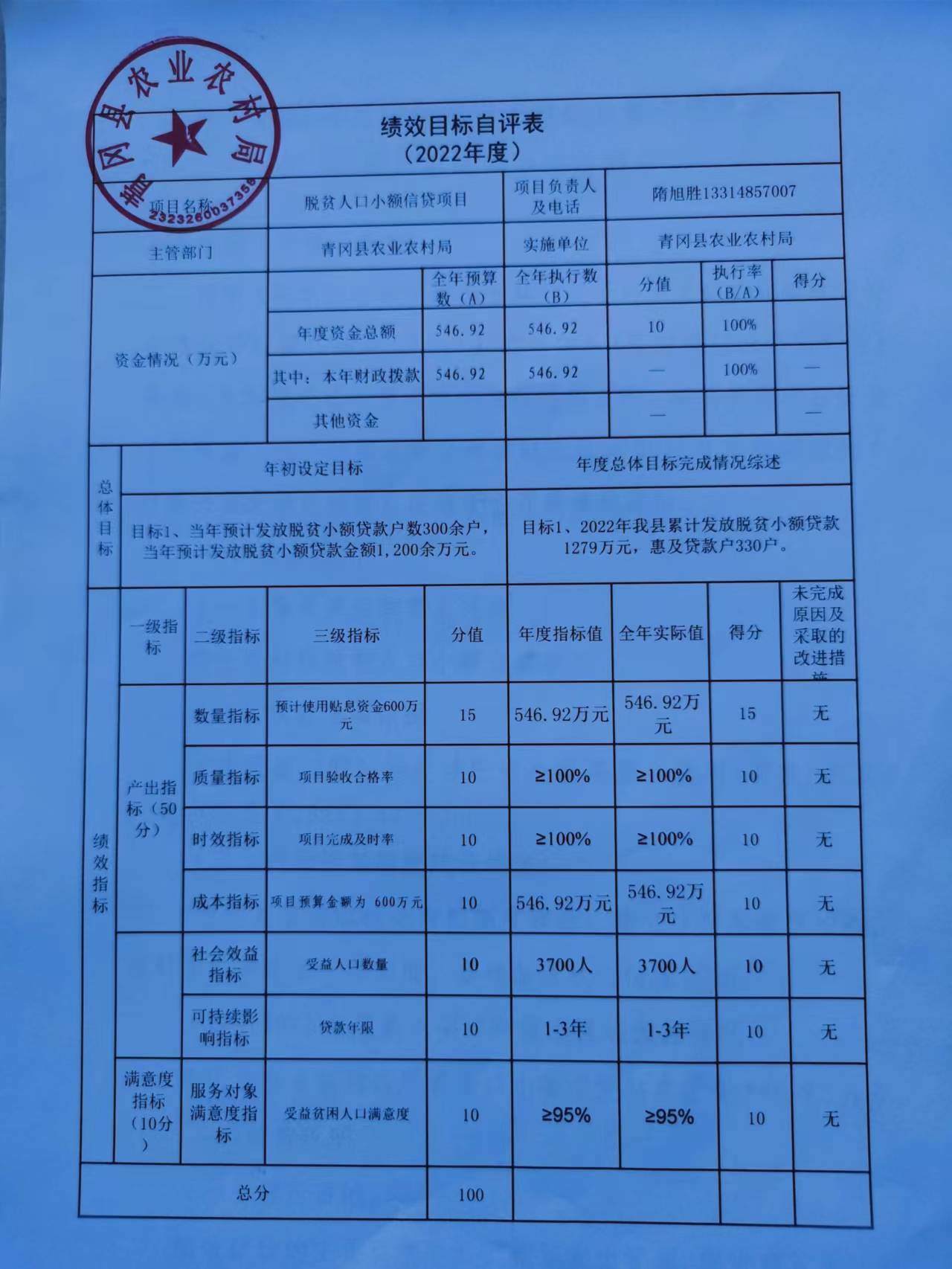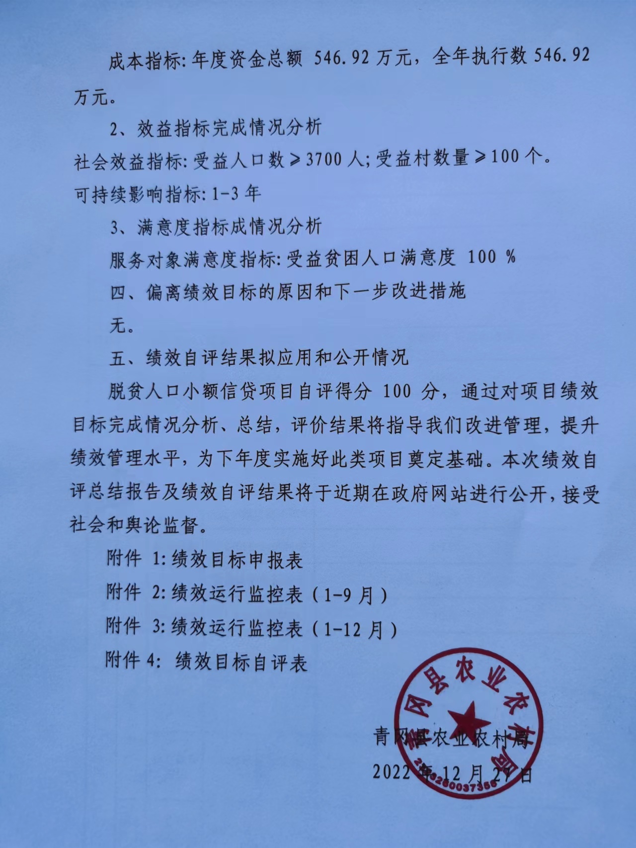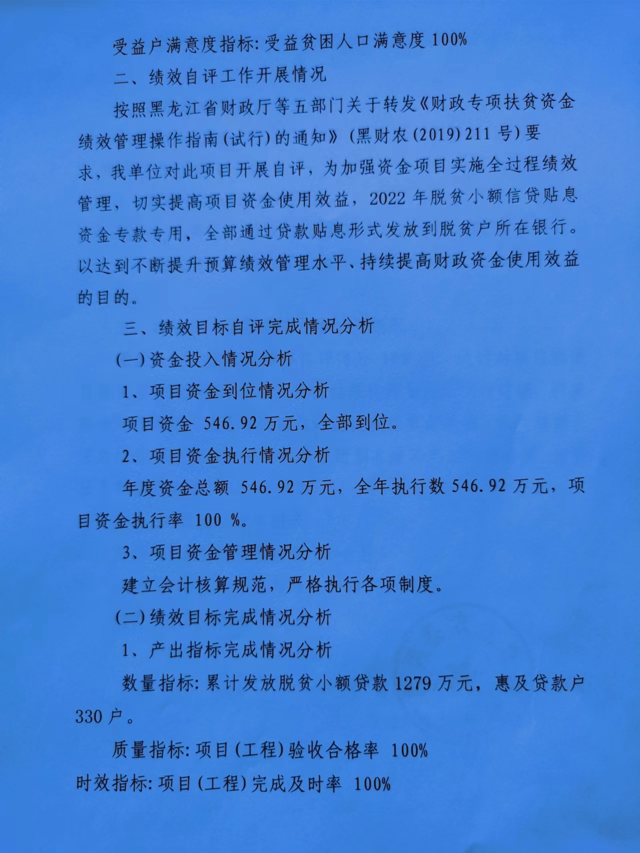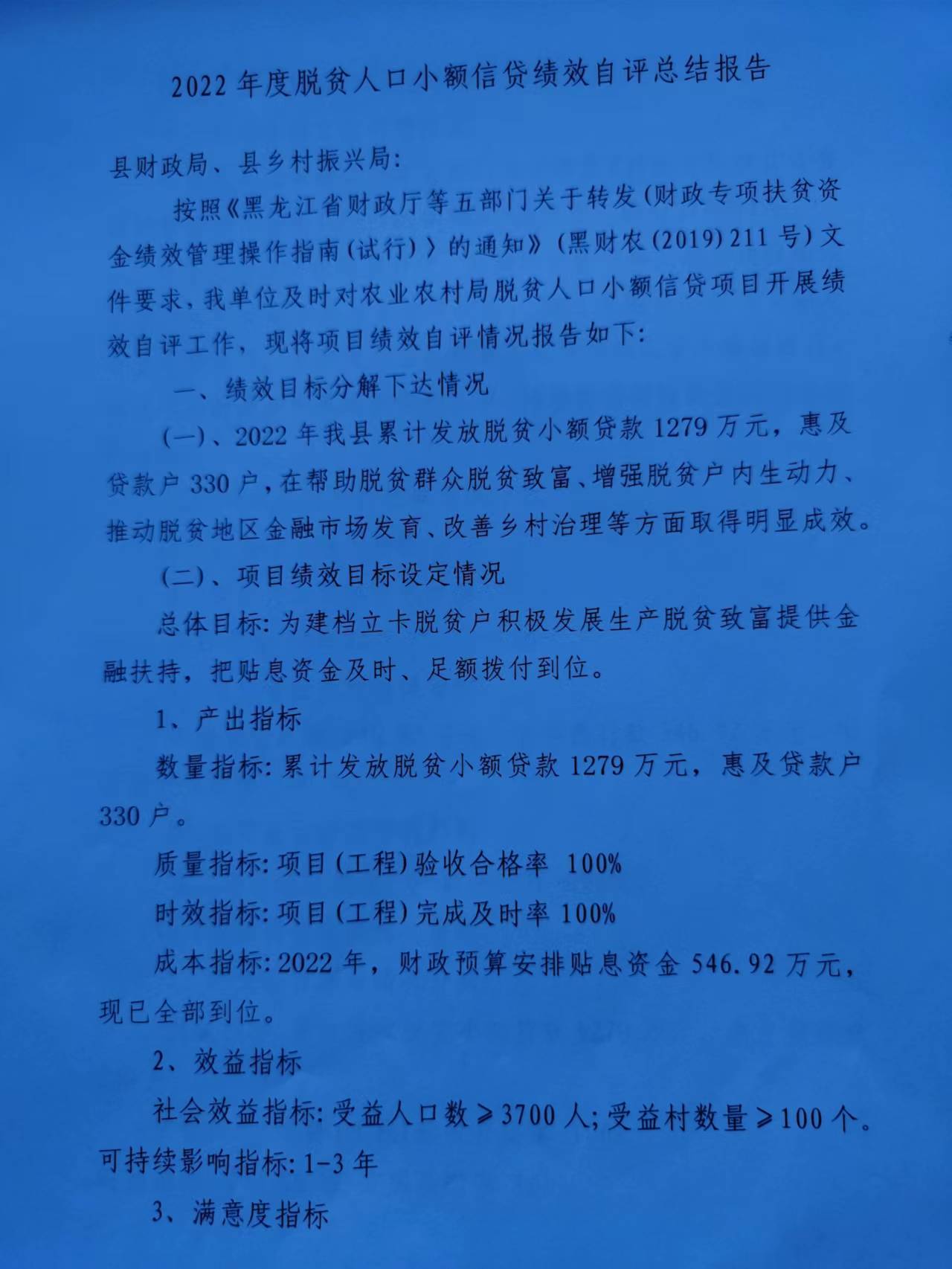 2022年度脱贫人口小额信贷项目绩效评价总结报告