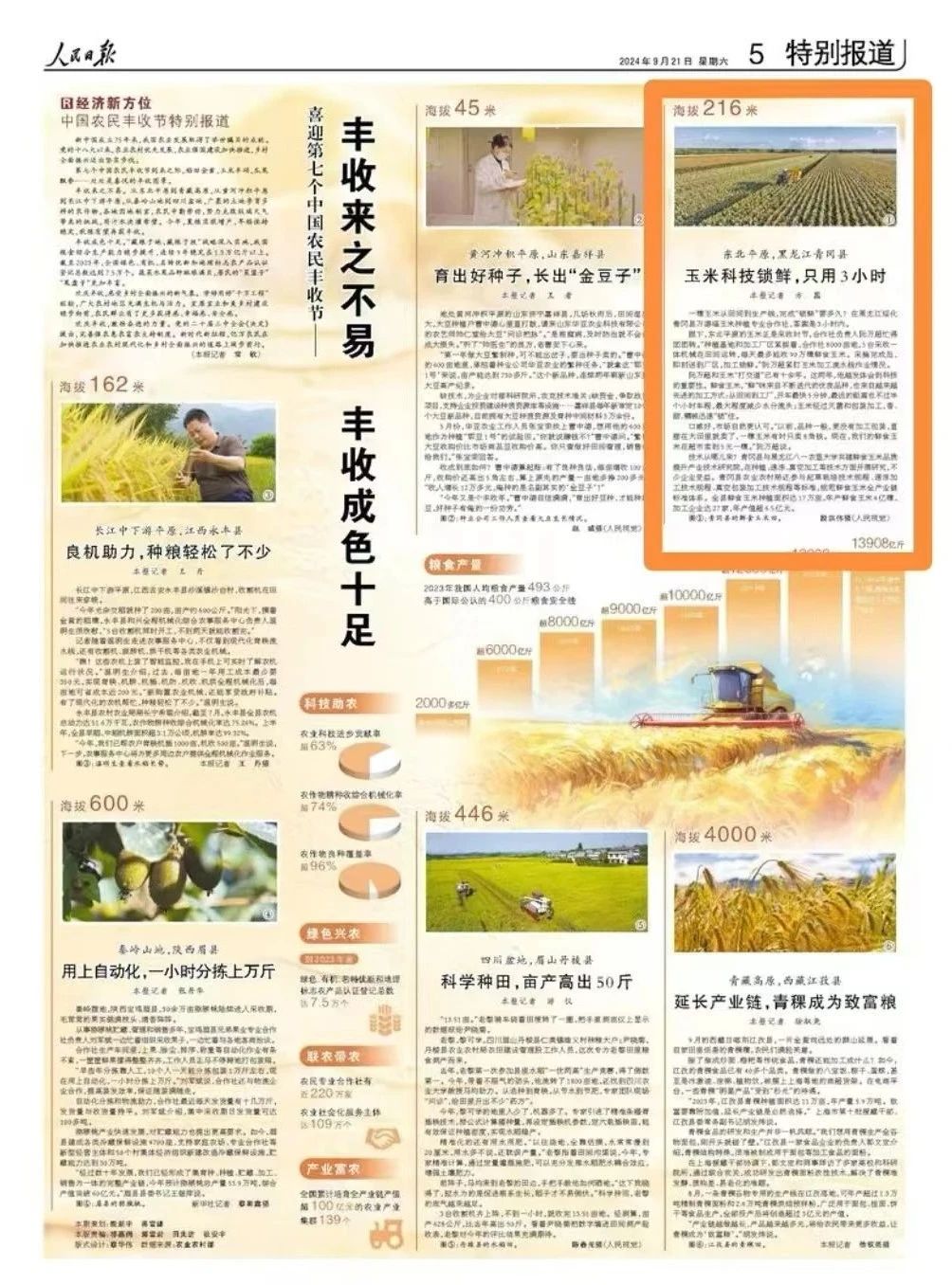 一穗玉米从田间到生产线,完成“锁鲜”要多久?在黑龙江绥化青冈县万德福玉米种植专业合作社,答案是3小时内。